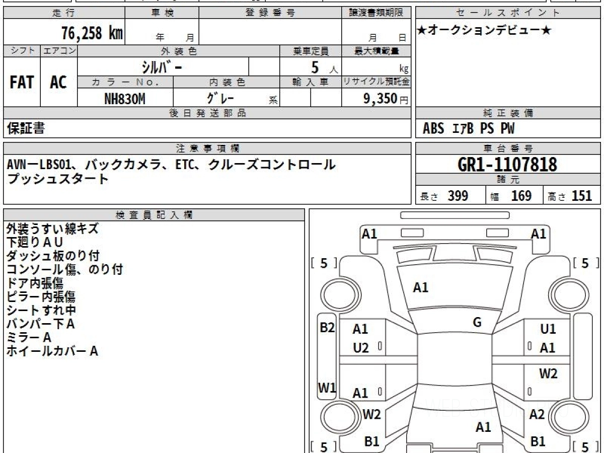 Оценка аукциона: 3.5, что гарантирует хорошее техническое и косметическое состояние кузова и салона.