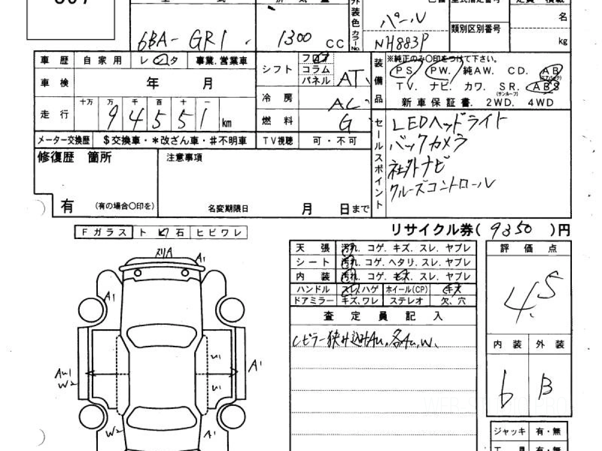 Оценка аукциона: 4.5, что гарантирует хорошее техническое и косметическое состояние кузова и салона.