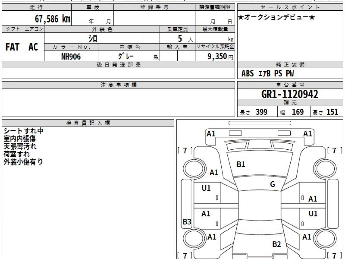 Оценка аукциона: 4, что гарантирует хорошее техническое и косметическое состояние кузова и салона.