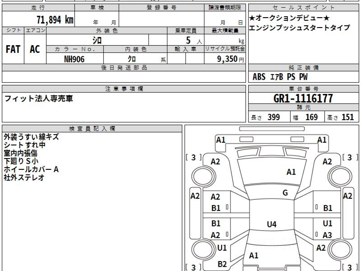 Оценка аукциона: 3.5, что гарантирует хорошее техническое и косметическое состояние кузова и салона.
