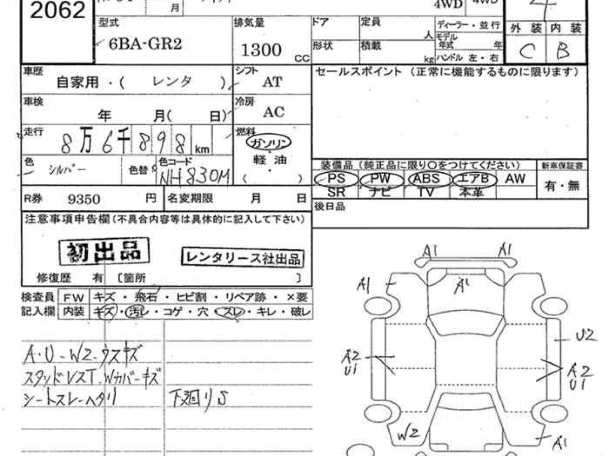 Оценка аукциона: 4, что гарантирует хорошее техническое и косметическое состояние кузова и салона.