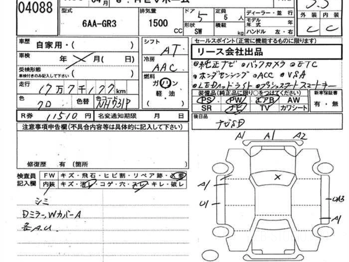 Оценка аукциона: 3.5, что гарантирует хорошее техническое и косметическое состояние кузова и салона.