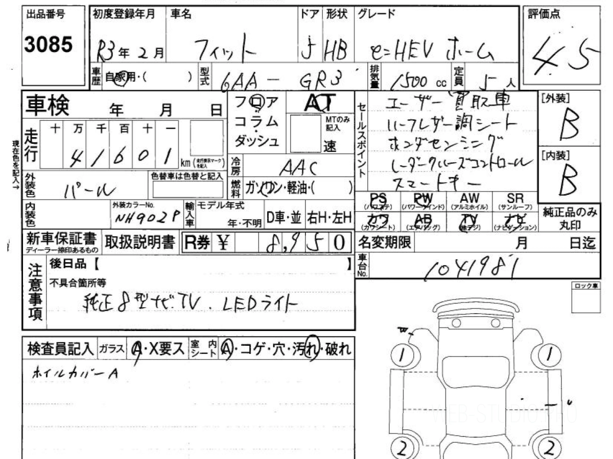 Оценка аукциона: 4.5, что гарантирует хорошее техническое и косметическое состояние кузова и салона.
