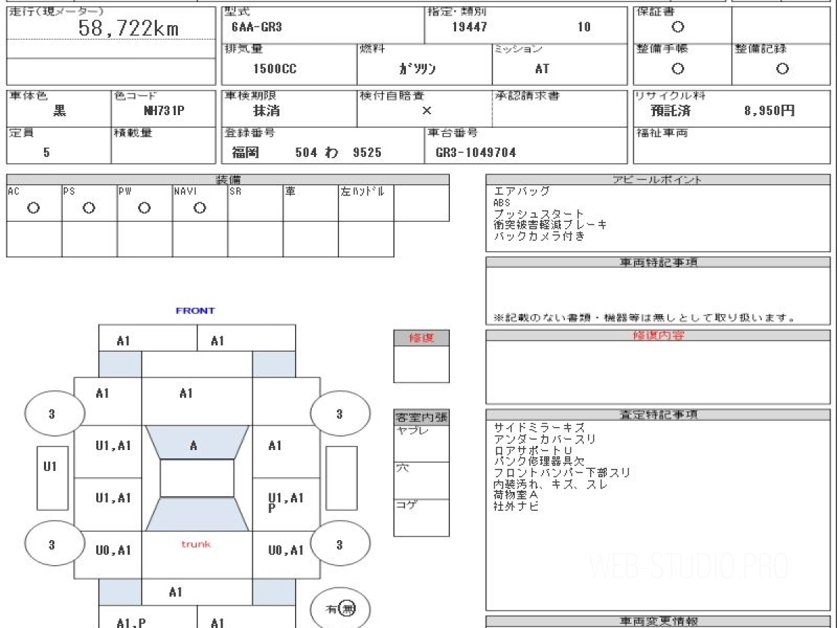 Номер кузова: GR3.