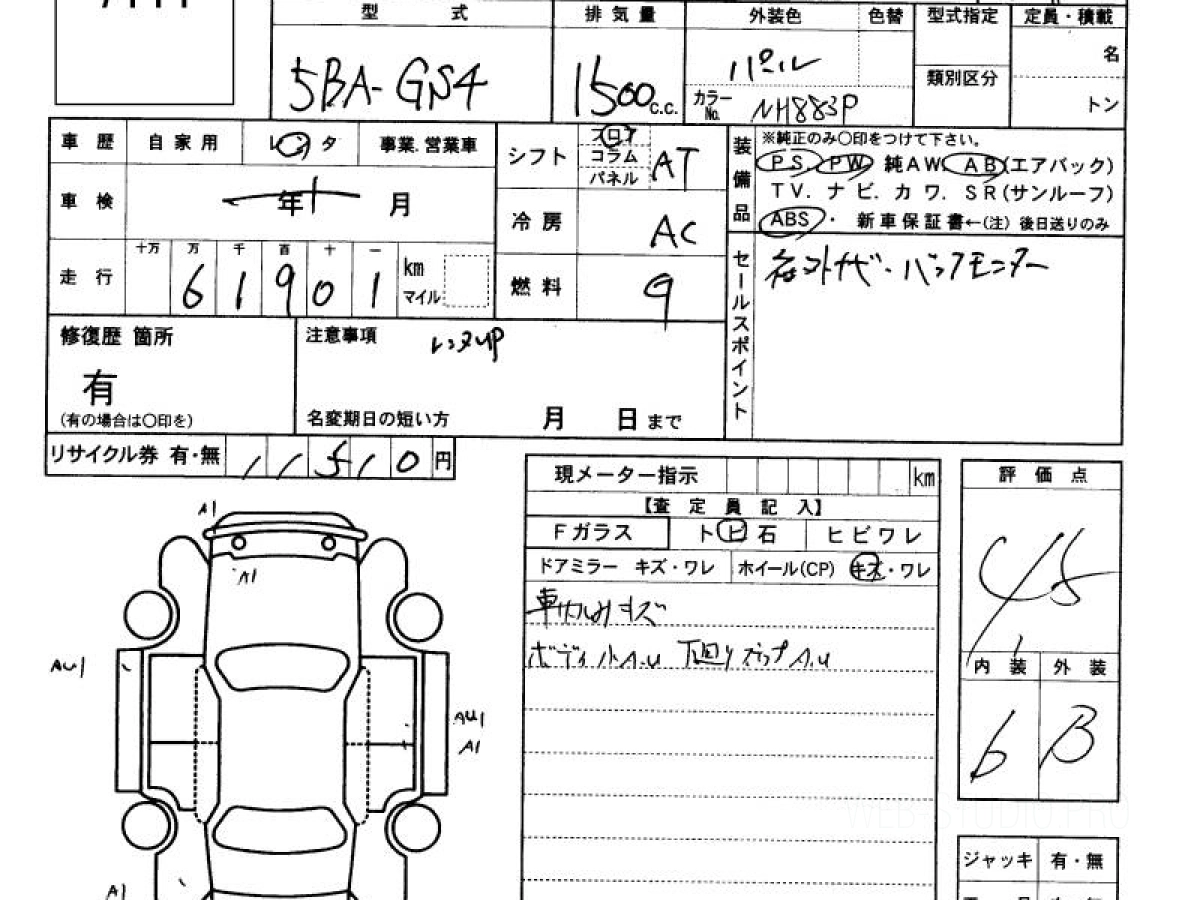 Оценка аукциона: 4.5, что гарантирует хорошее техническое и косметическое состояние кузова и салона.