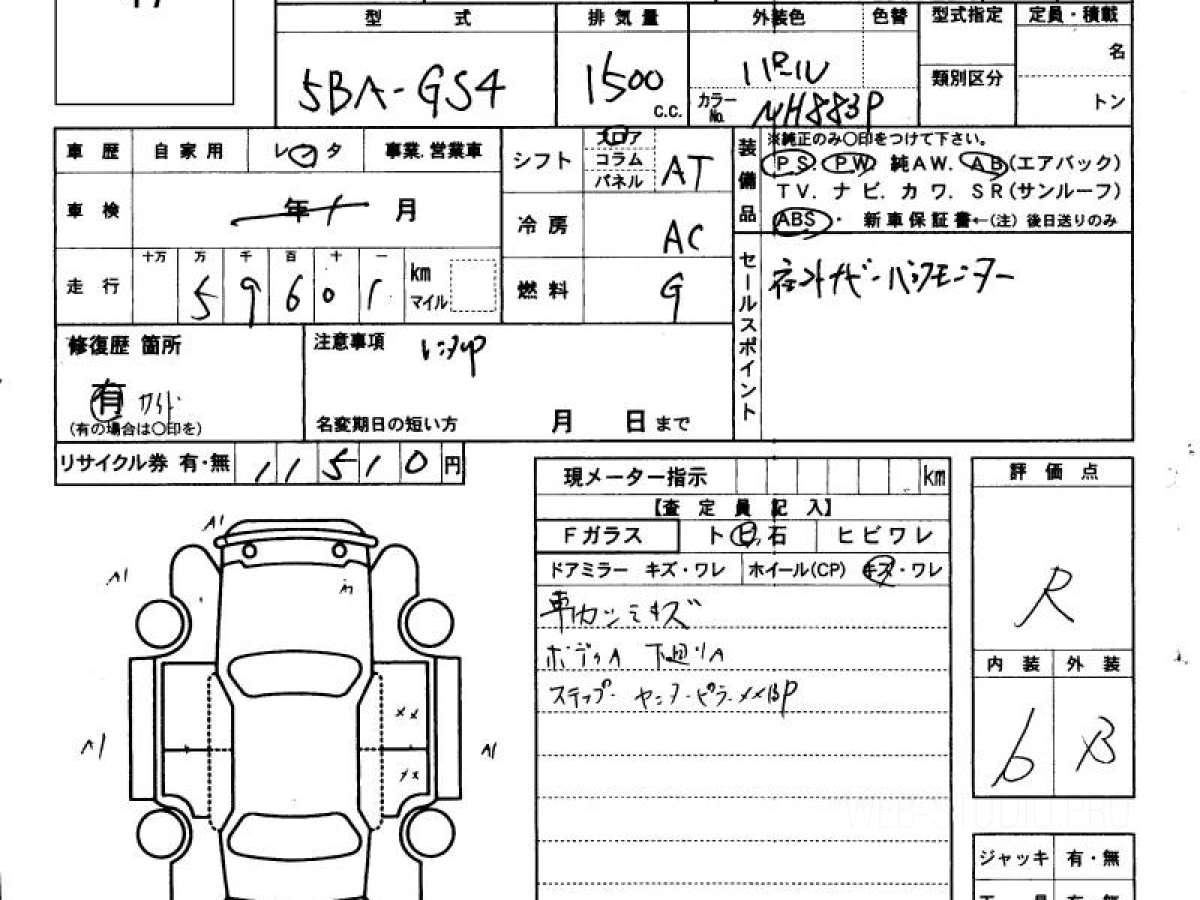 Оценка аукциона: R, что гарантирует хорошее техническое и косметическое состояние кузова и салона.