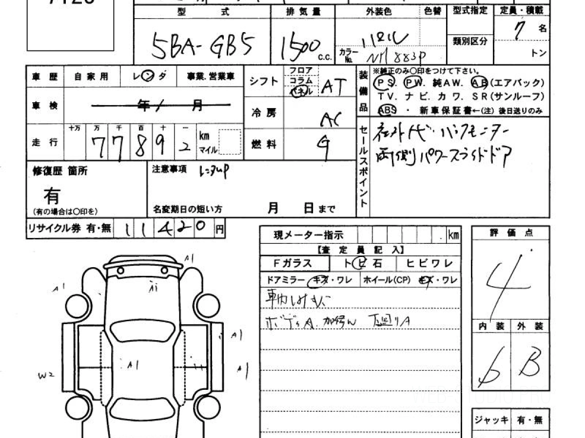 Оценка аукциона: 4, что гарантирует хорошее техническое и косметическое состояние кузова и салона.