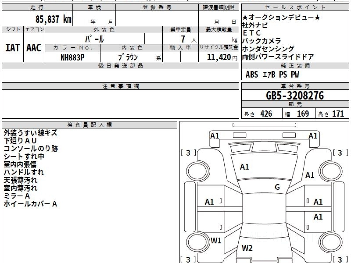 Оценка аукциона: 4, что гарантирует хорошее техническое и косметическое состояние кузова и салона.