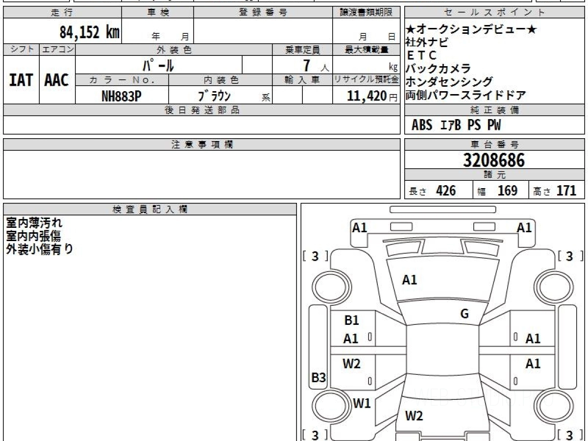 Оценка аукциона: 4, что гарантирует хорошее техническое и косметическое состояние кузова и салона.