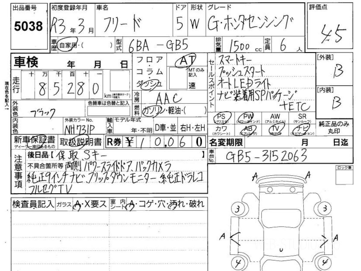 Оценка аукциона: 4.5, что гарантирует хорошее техническое и косметическое состояние кузова и салона.