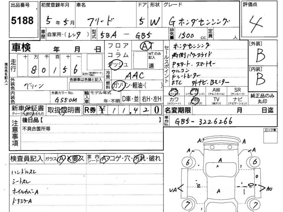 Оценка аукциона: 4, что гарантирует хорошее техническое и косметическое состояние кузова и салона.