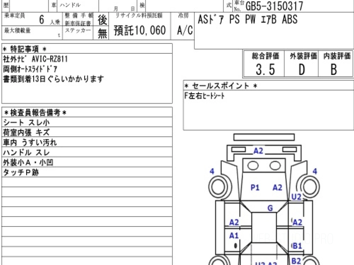 Оценка аукциона: 3.5, что гарантирует хорошее техническое и косметическое состояние кузова и салона.