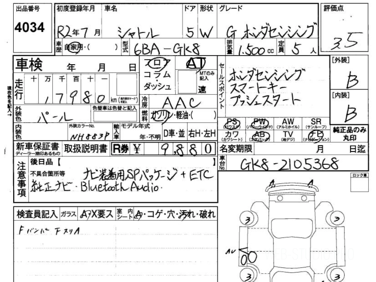 Оценка аукциона: 3.5, что гарантирует хорошее техническое и косметическое состояние кузова и салона.