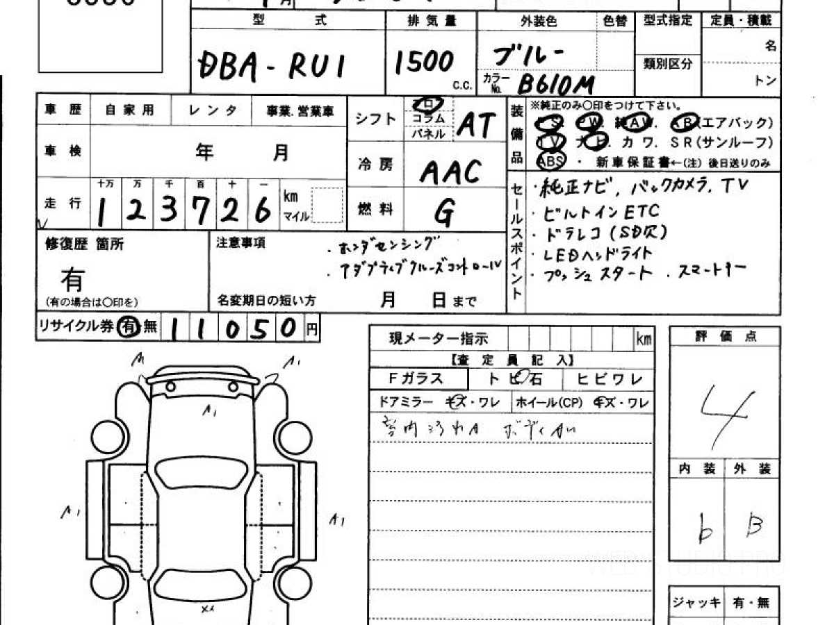 Оценка аукциона: 4, что гарантирует хорошее техническое и косметическое состояние кузова и салона.