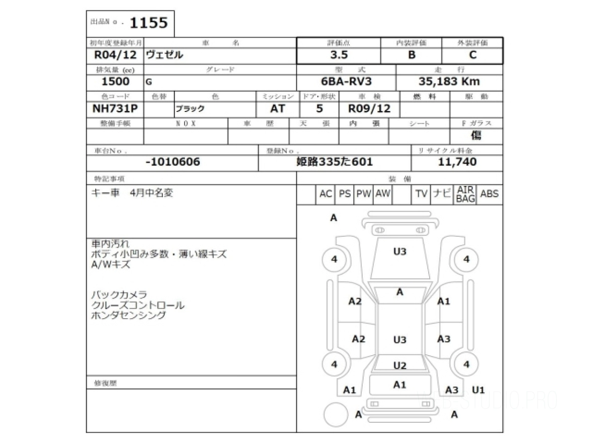 Оценка аукциона: 3.5, что гарантирует хорошее техническое и косметическое состояние кузова и салона.