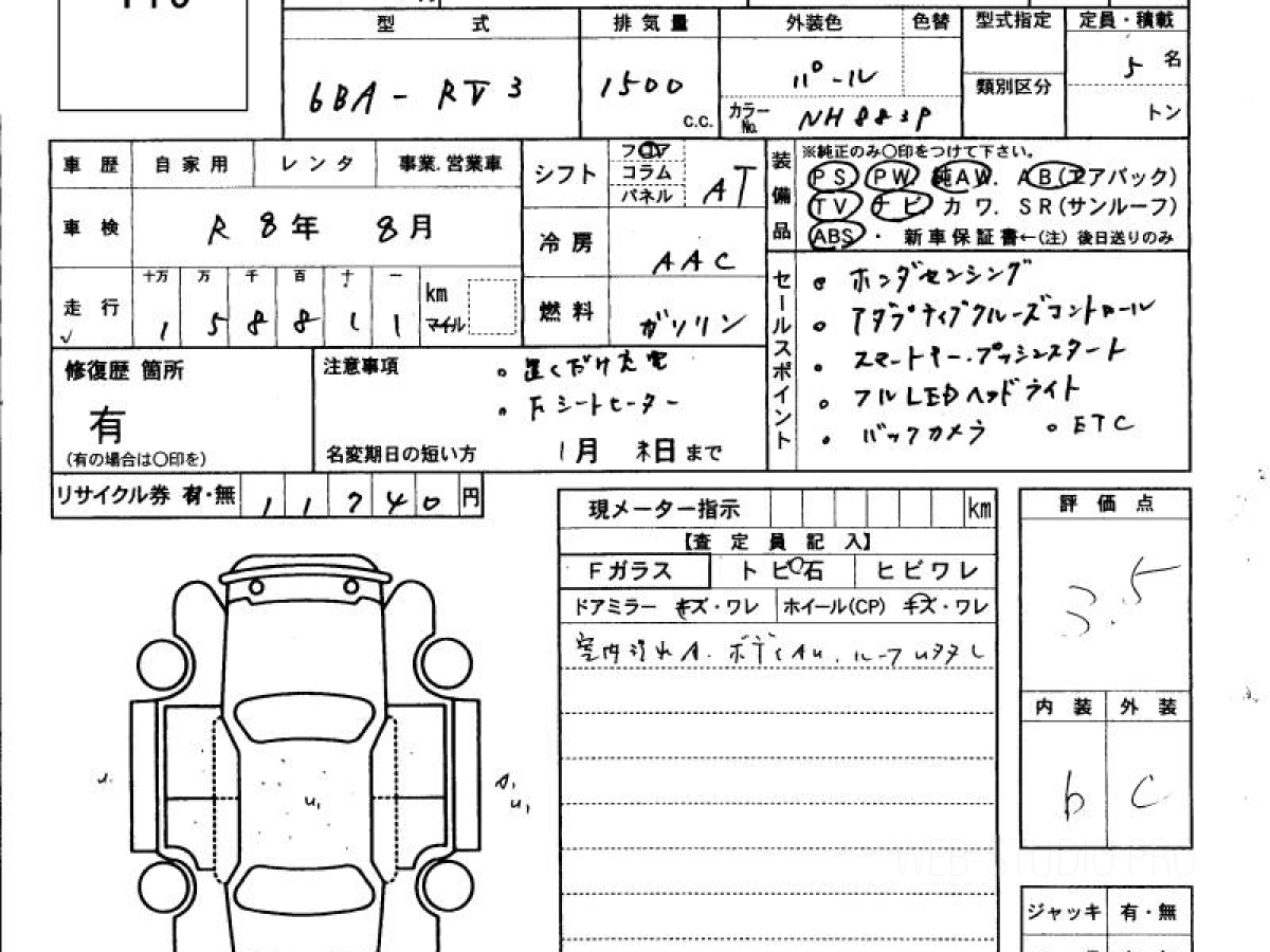 Оценка аукциона: 3.5, что гарантирует хорошее техническое и косметическое состояние кузова и салона.