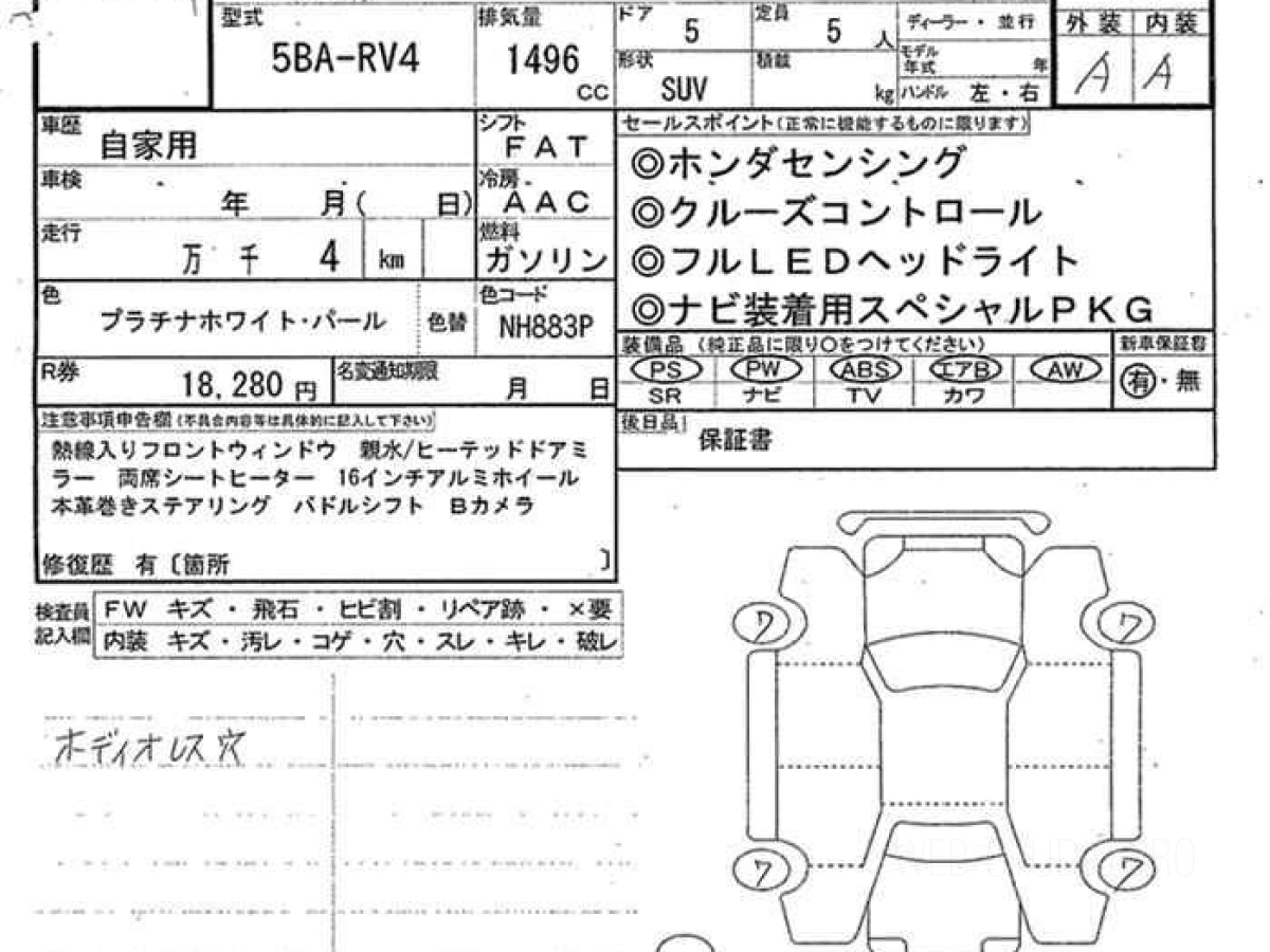 Оценка аукциона: S, что гарантирует хорошее техническое и косметическое состояние кузова и салона.