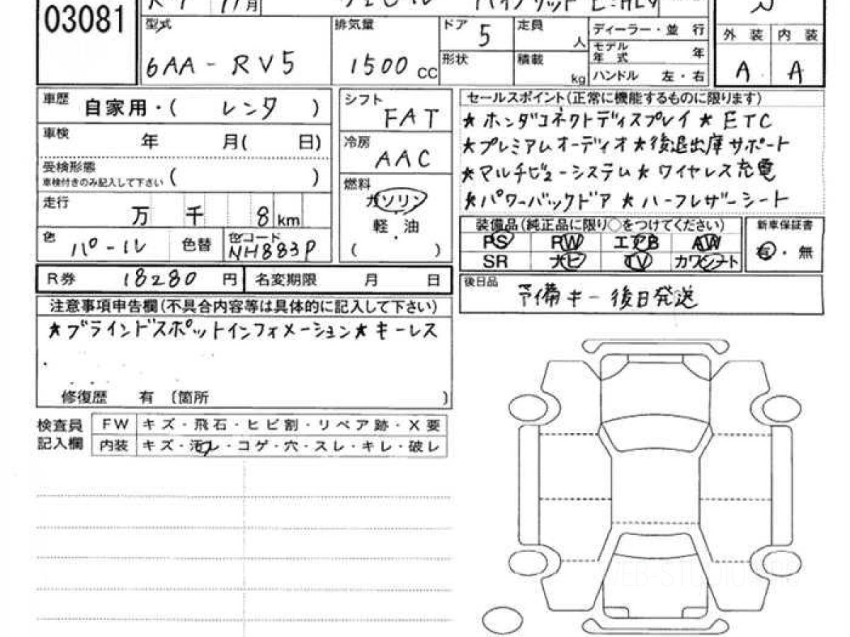 Купить HONDA VEZEL 2025 года выпуска можно под заказ с аукционов Японии во Владивостоке с доставкой в Москву или любой другой город России.