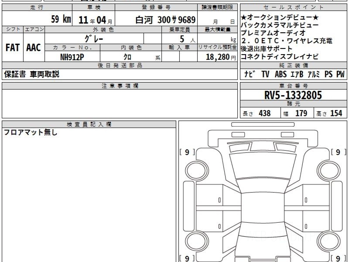 Оценка аукциона: S, что гарантирует хорошее техническое и косметическое состояние кузова и салона.