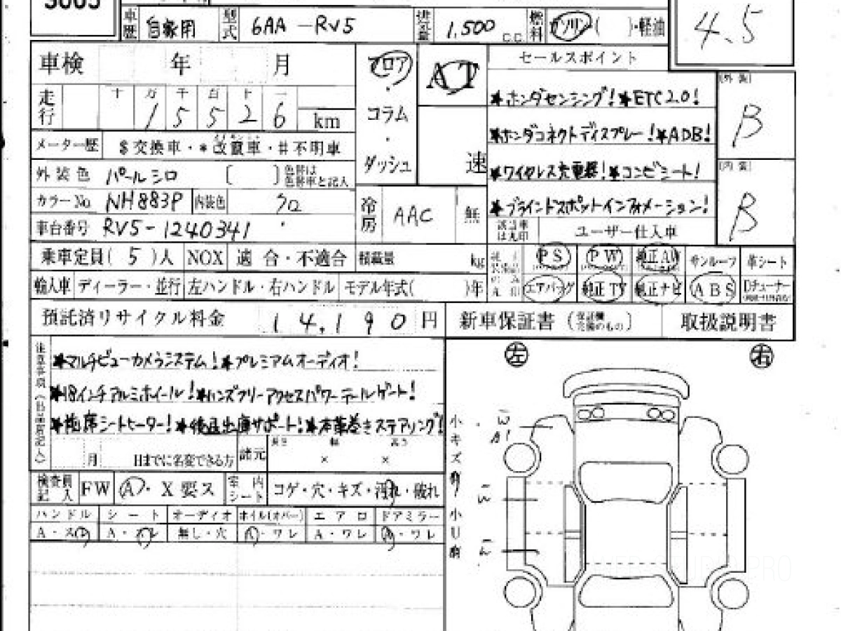 Оценка аукциона: 4.5, что гарантирует хорошее техническое и косметическое состояние кузова и салона.