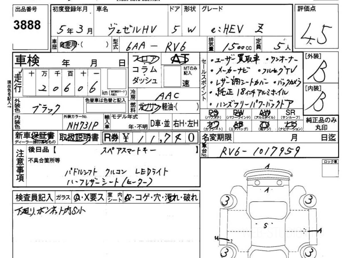 Оценка аукциона: 4.5, что гарантирует хорошее техническое и косметическое состояние кузова и салона.