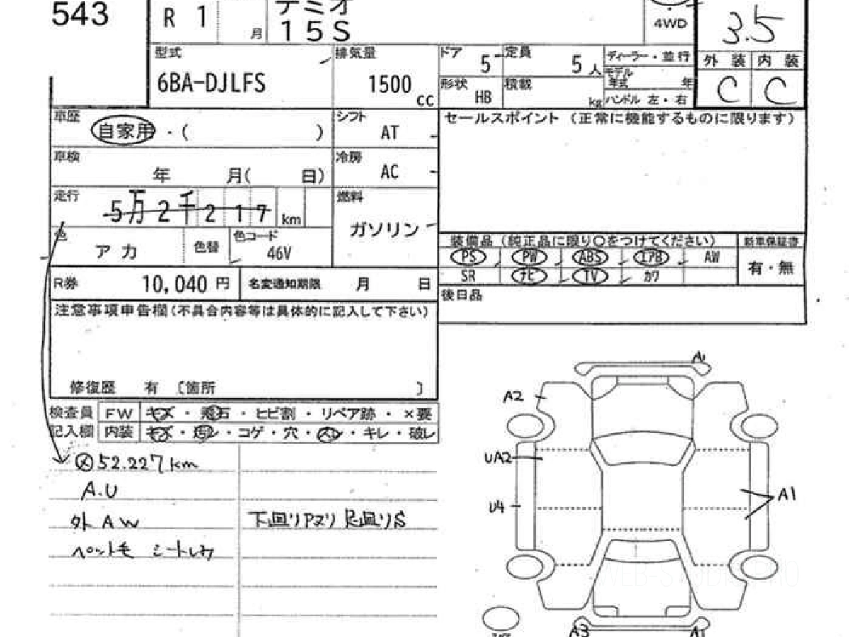 Оценка аукциона: 3.5, что гарантирует хорошее техническое и косметическое состояние кузова и салона.