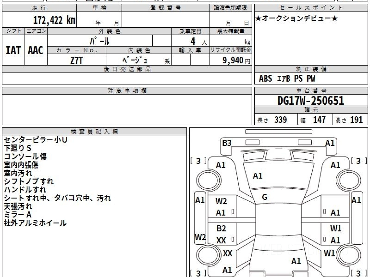 Оценка аукциона: 3.5, что гарантирует хорошее техническое и косметическое состояние кузова и салона.