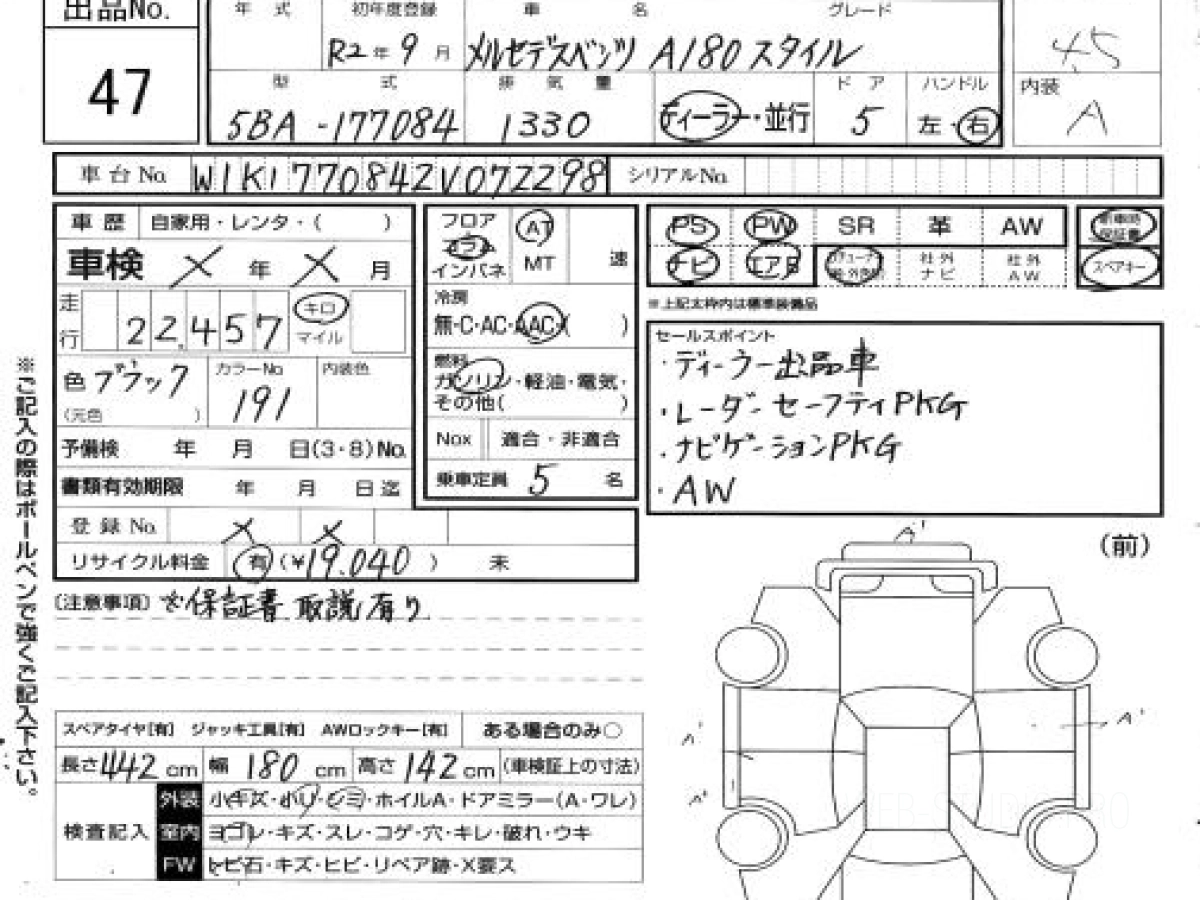 Цена на МЕРСЕДЕС БЕНЦ А КЛАСС 177084 2020 с аукционов Японии зависит от состояния авто и комплектации, указана с расчётом пошлины, всех расходов с учетом доставки во Владивосток.