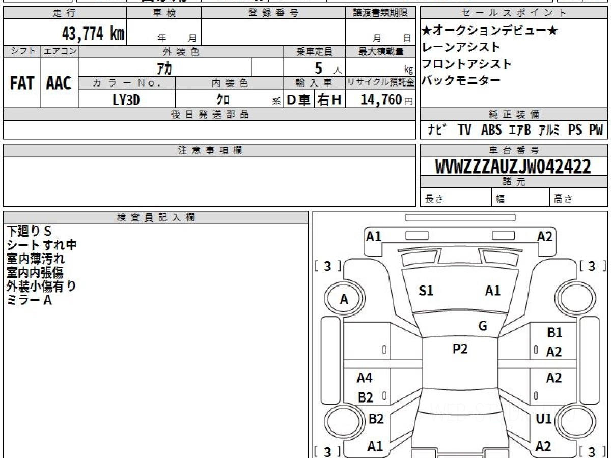 Оценка аукциона: 4, что гарантирует хорошее техническое и косметическое состояние кузова и салона.