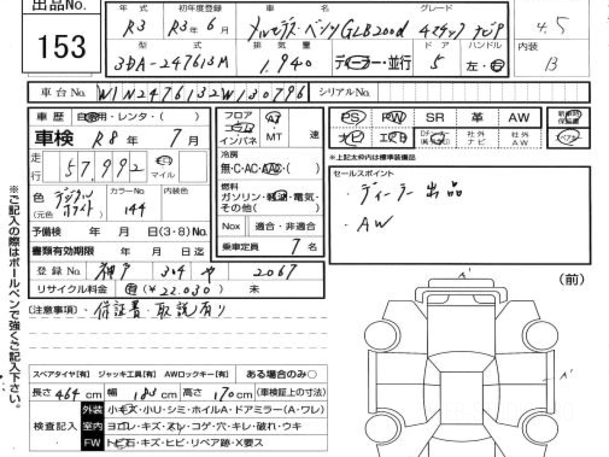 Не упустите возможность купить технологичный автомобиль уже сегодня! Закажите GLB без пробега по России, с незначительным пробегом в 58000 км по Японии, в комплектации GLB 200d 4M Navi P (кузов 247613M) по выгодной стоимости — 2 527 000 ₽ на Дальнем Востоке.