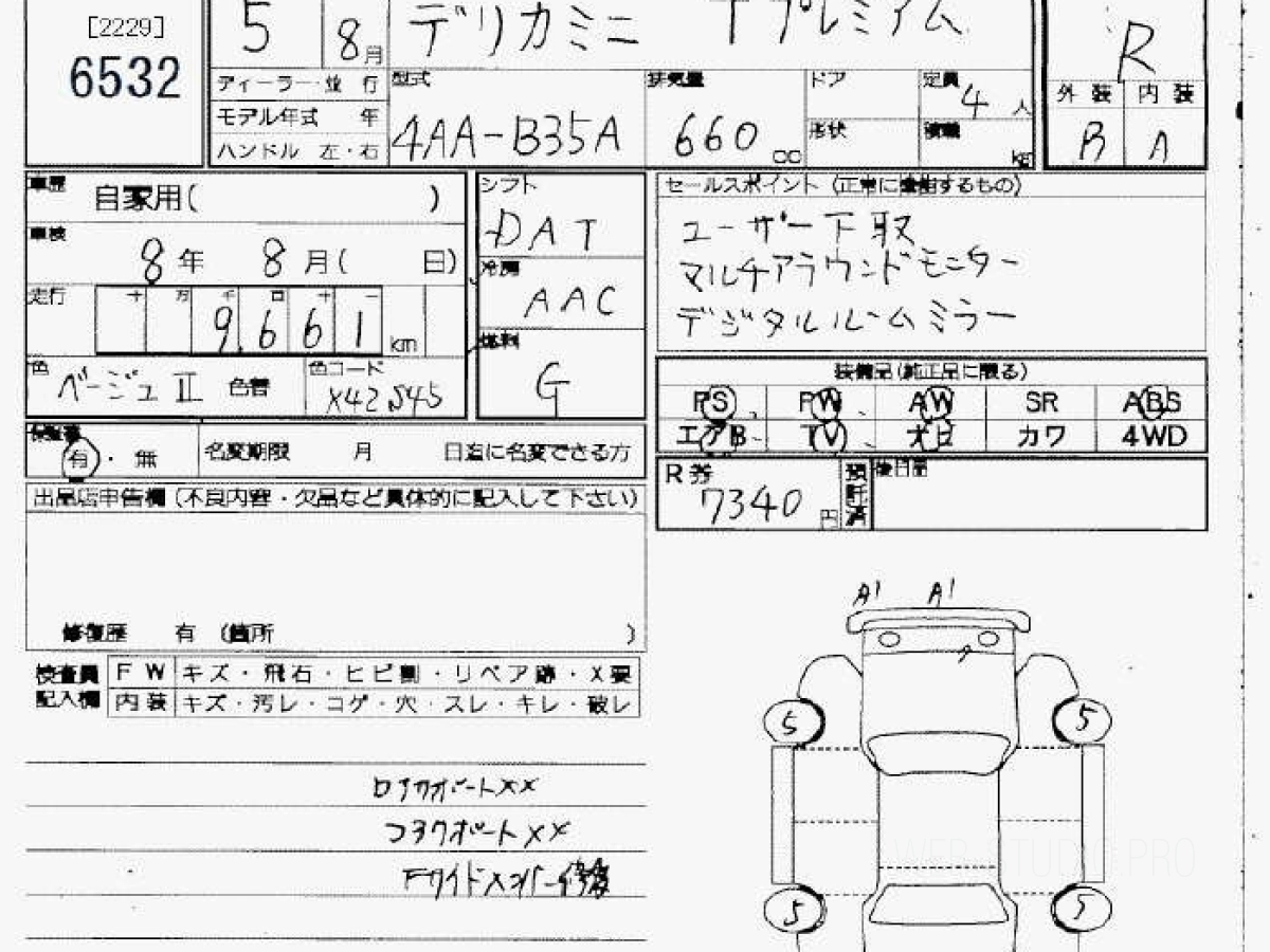 Оценка аукциона: R, что гарантирует хорошее техническое и косметическое состояние кузова и салона.