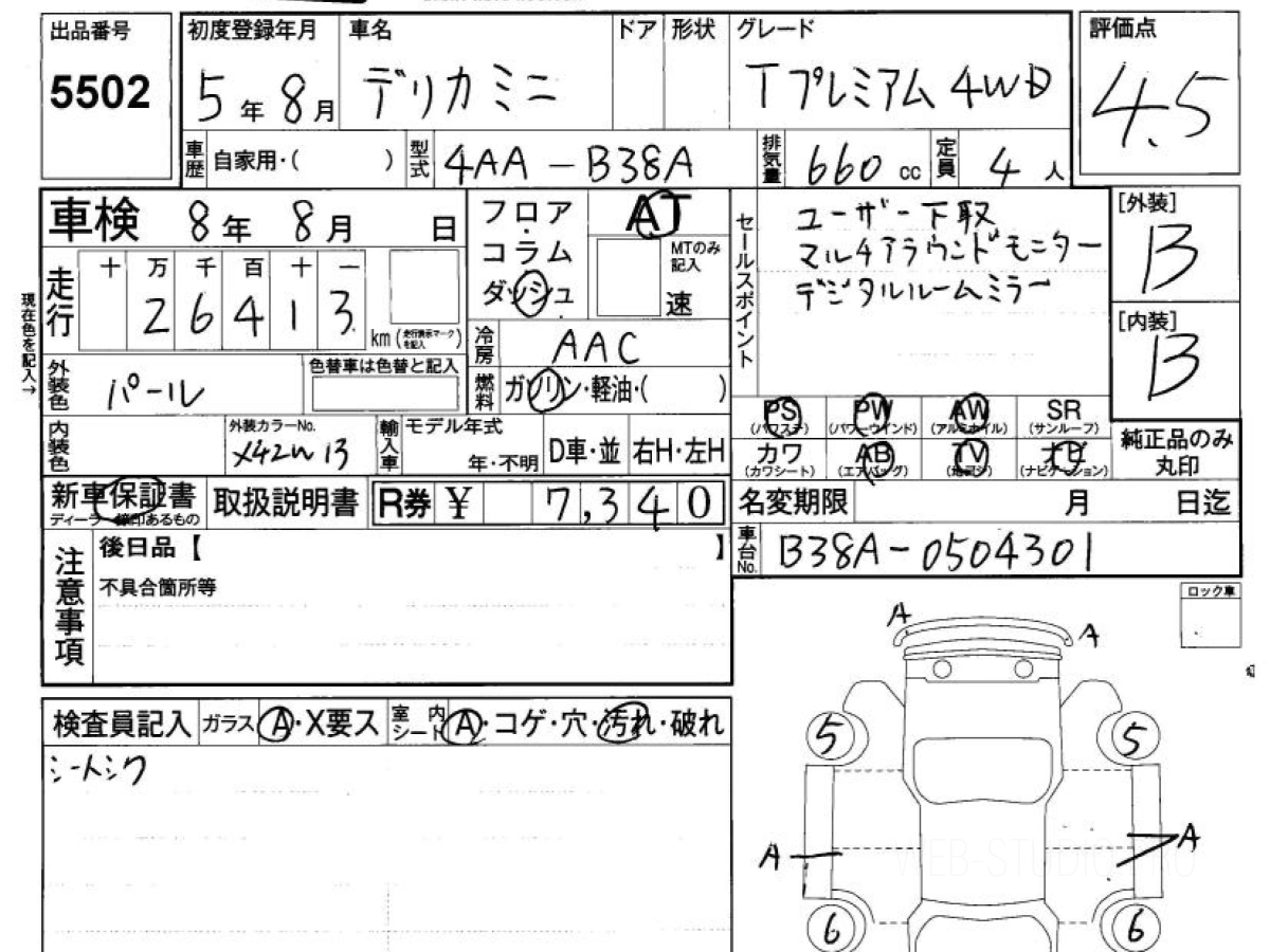 Оценка аукциона: 4.5, что гарантирует хорошее техническое и косметическое состояние кузова и салона.