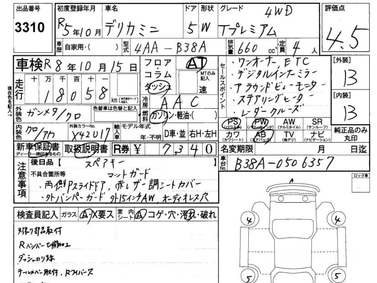 Оценка аукциона: 4.5, что гарантирует хорошее техническое и косметическое состояние кузова и салона.