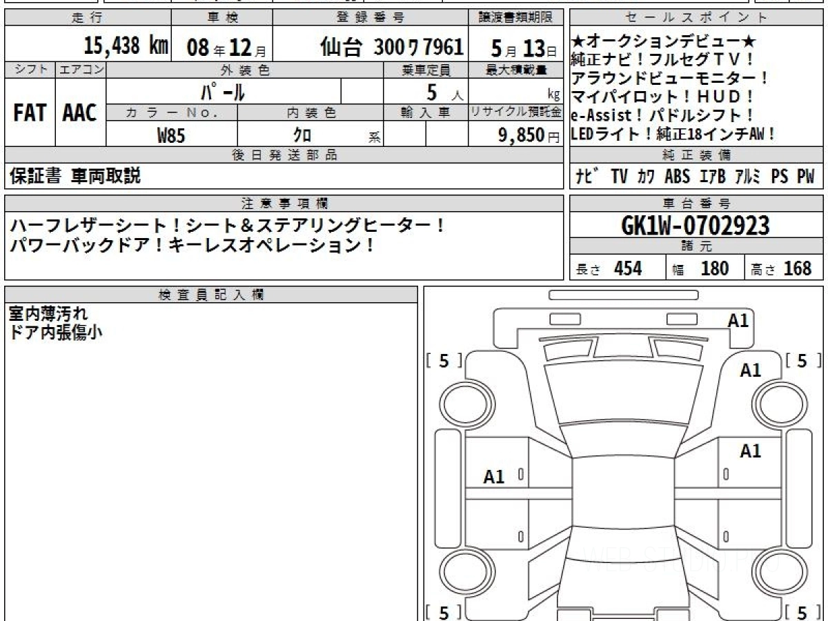 Оценка аукциона: 5, что гарантирует хорошее техническое и косметическое состояние кузова и салона.