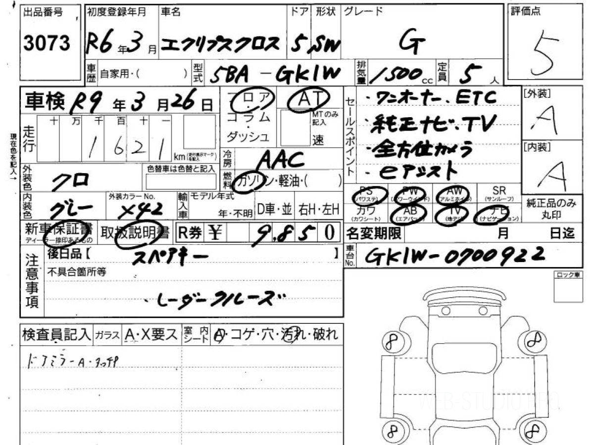 Стоимость MITSUBISHI ECLIPSE CROSS GK1W 2024 определяется исходя из состояния и комплектации автомобиля. Указанная цена учитывает таможенные платежи и затраты на доставку во Владивосток.