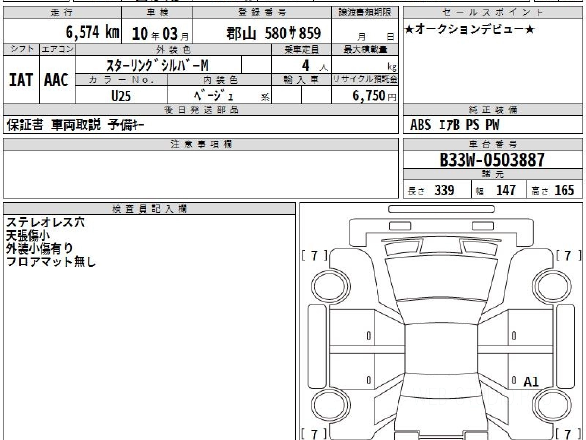 Номер кузова: B33W.
