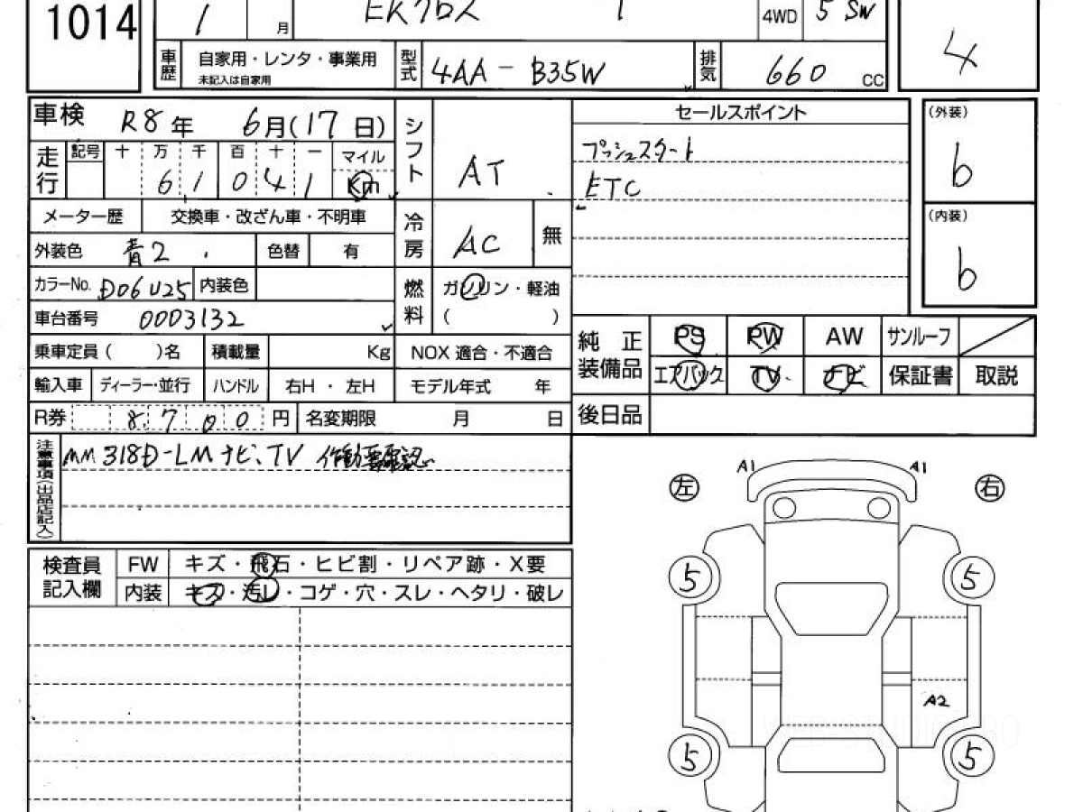 Оценка аукциона: 4, что гарантирует хорошее техническое и косметическое состояние кузова и салона.