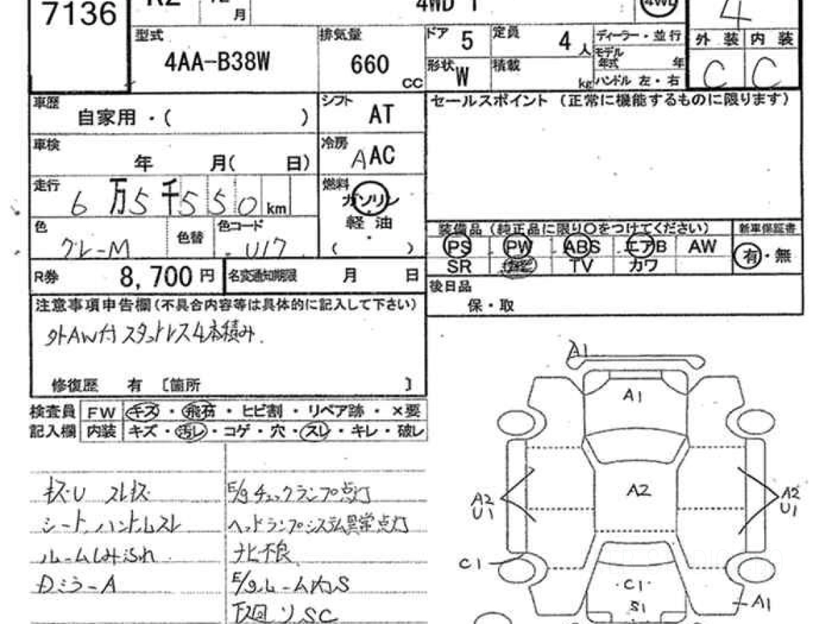 Оценка аукциона: 4, что гарантирует хорошее техническое и косметическое состояние кузова и салона.