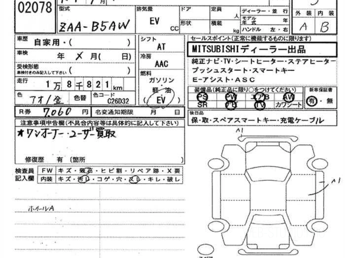 Купить MITSUBISHI EK X EV 2022 года выпуска можно под заказ с аукционов Японии во Владивостоке с доставкой в Москву или любой другой город России.