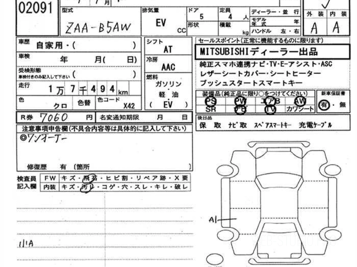 Стоимость MITSUBISHI EK X EV B5AW 2022 определяется исходя из состояния и комплектации автомобиля. Указанная цена учитывает таможенные платежи и затраты на доставку во Владивосток.