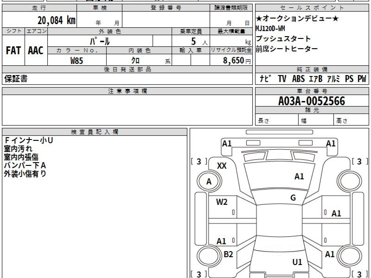 Оценка аукциона: 3.5, что гарантирует хорошее техническое и косметическое состояние кузова и салона.