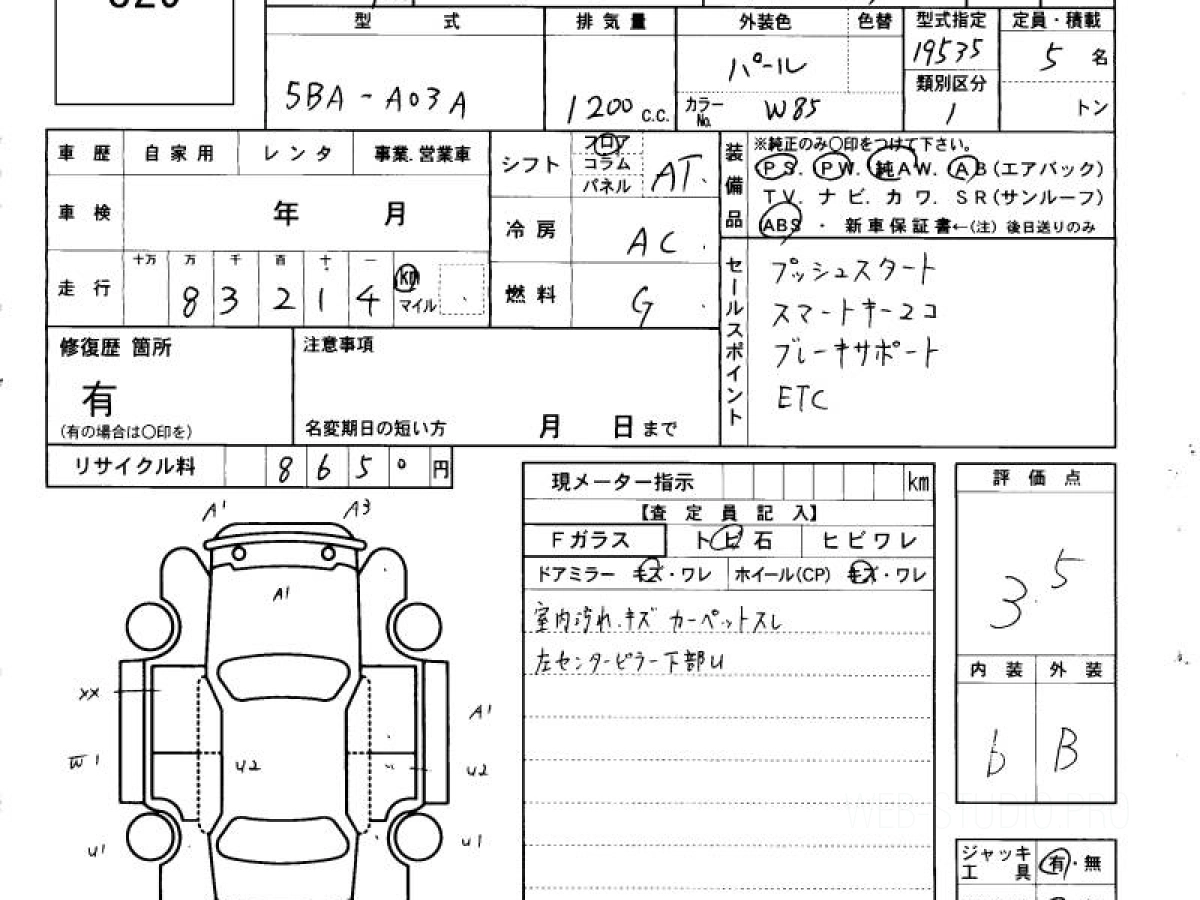 Оценка аукциона: 3.5, что гарантирует хорошее техническое и косметическое состояние кузова и салона.