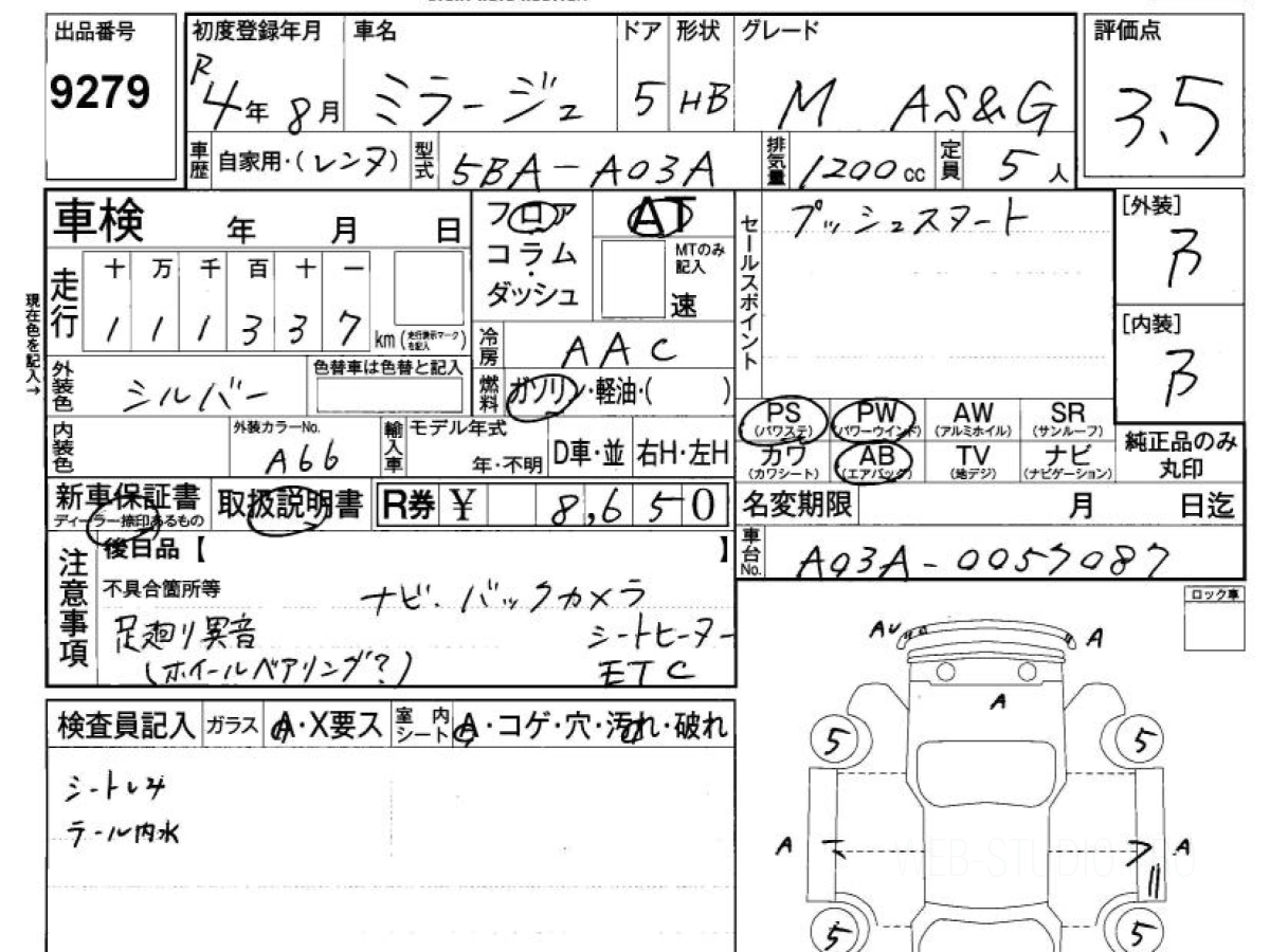 Стоимость MITSUBISHI MIRAGE A03A 2022 определяется исходя из состояния и комплектации автомобиля. Указанная цена учитывает таможенные платежи и затраты на доставку во Владивосток.