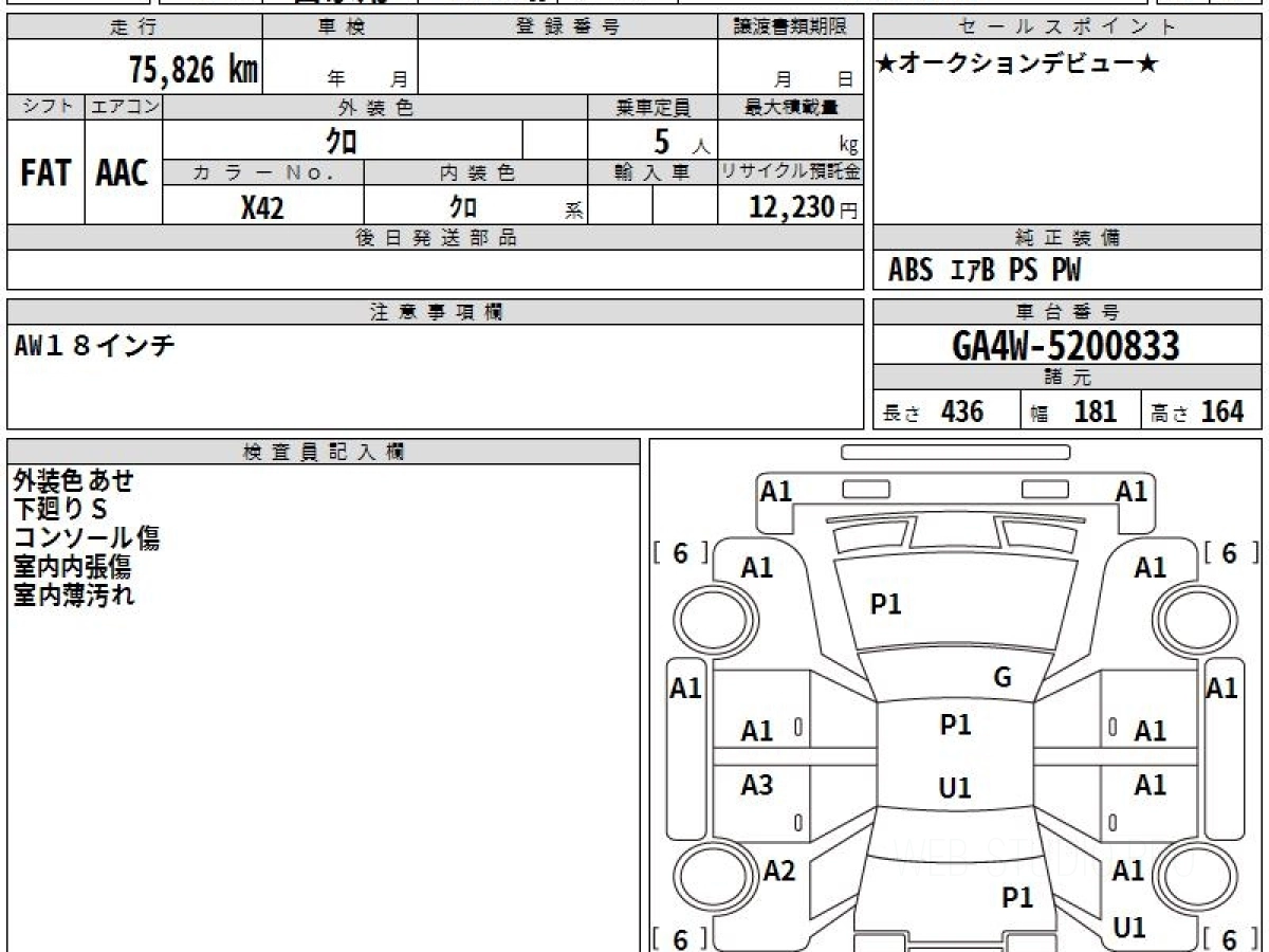 Оценка аукциона: 4, что гарантирует хорошее техническое и косметическое состояние кузова и салона.