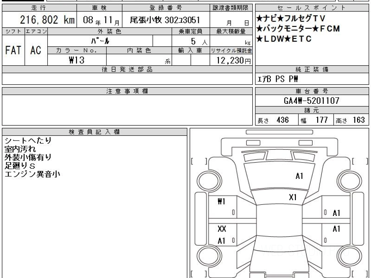 Оценка аукциона: 3.5, что гарантирует хорошее техническое и косметическое состояние кузова и салона.