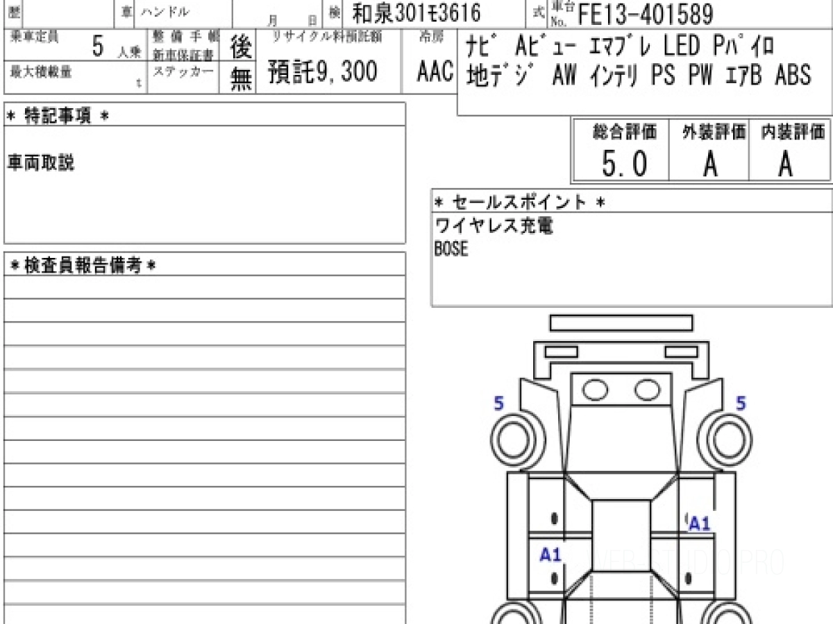 Оценка аукциона: 5, что гарантирует хорошее техническое и косметическое состояние кузова и салона.
