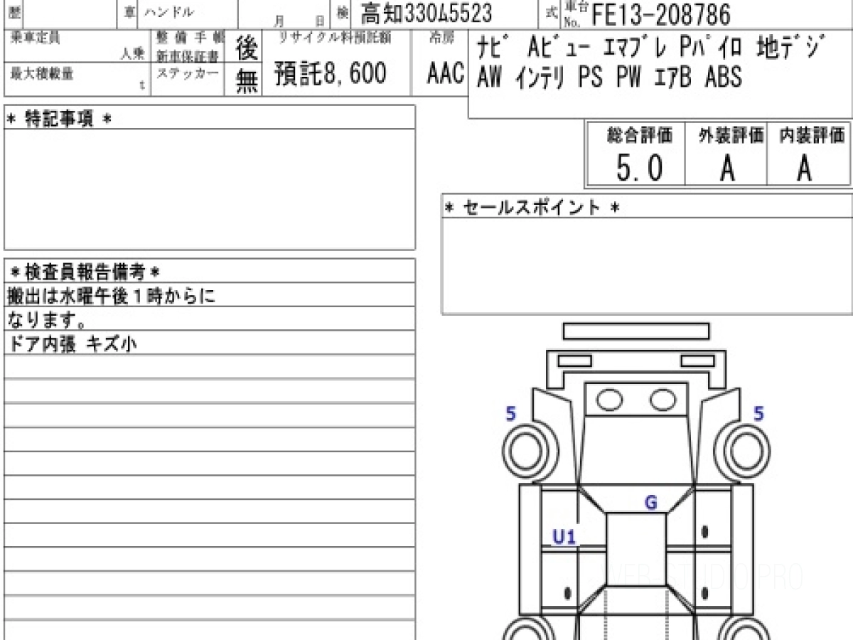 Оценка аукциона: 5, что гарантирует хорошее техническое и косметическое состояние кузова и салона.