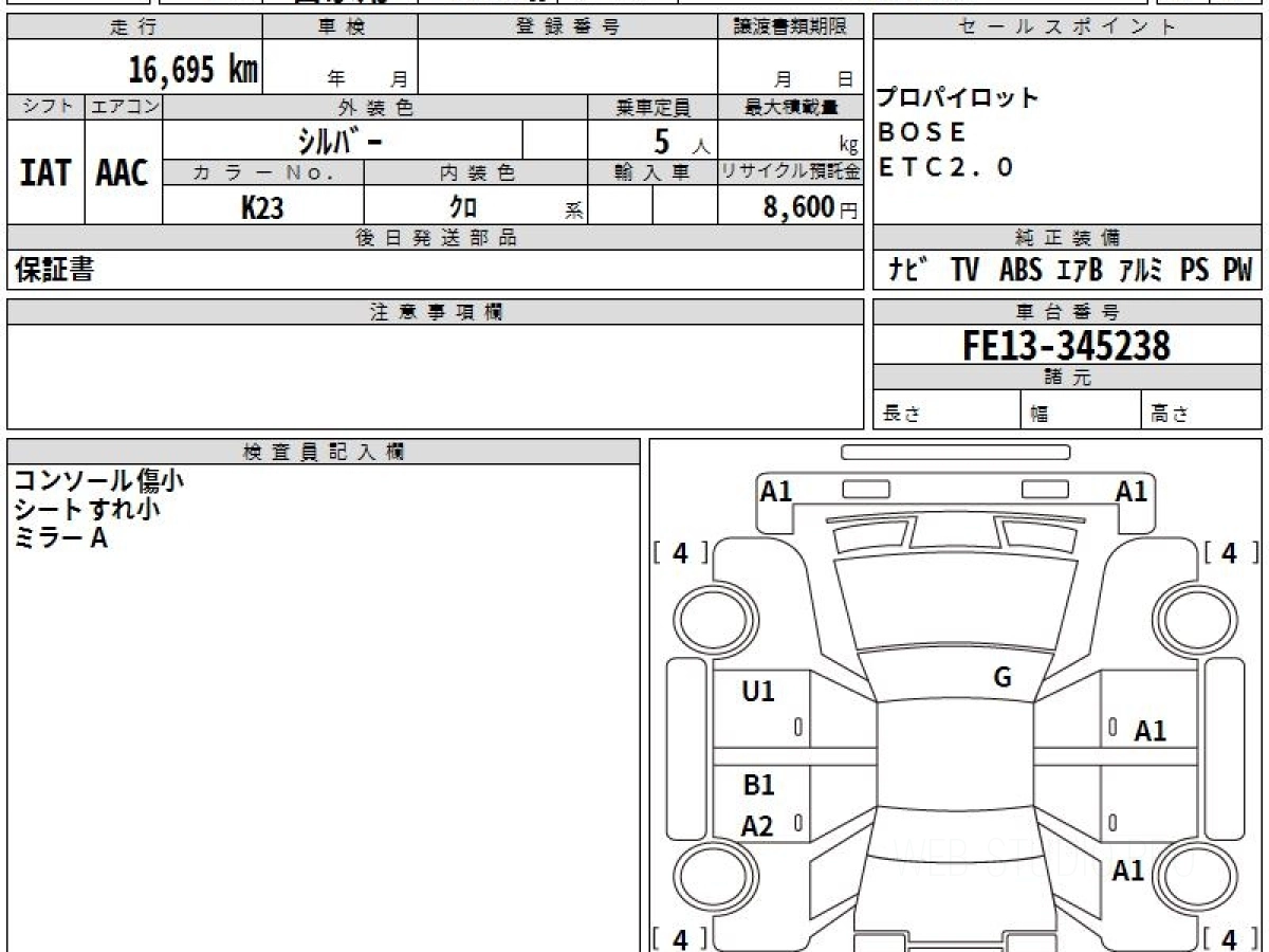 Оценка аукциона: 4.5, что гарантирует хорошее техническое и косметическое состояние кузова и салона.