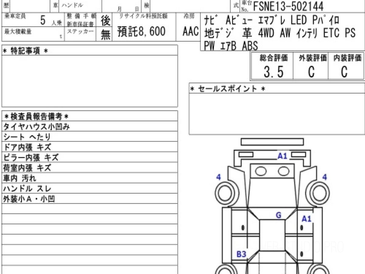 Оценка аукциона: 3.5, что гарантирует хорошее техническое и косметическое состояние кузова и салона.