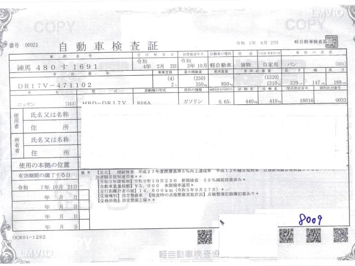 Номер кузова: DR17V.